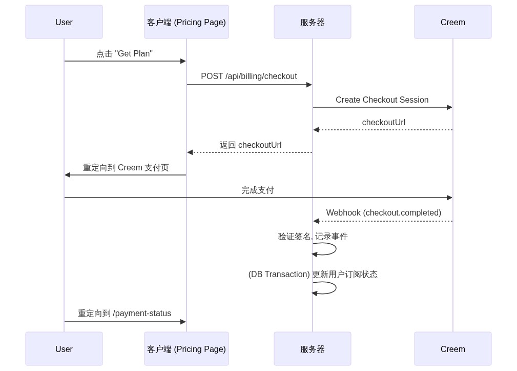 D -- Payment API --> H[Creem];